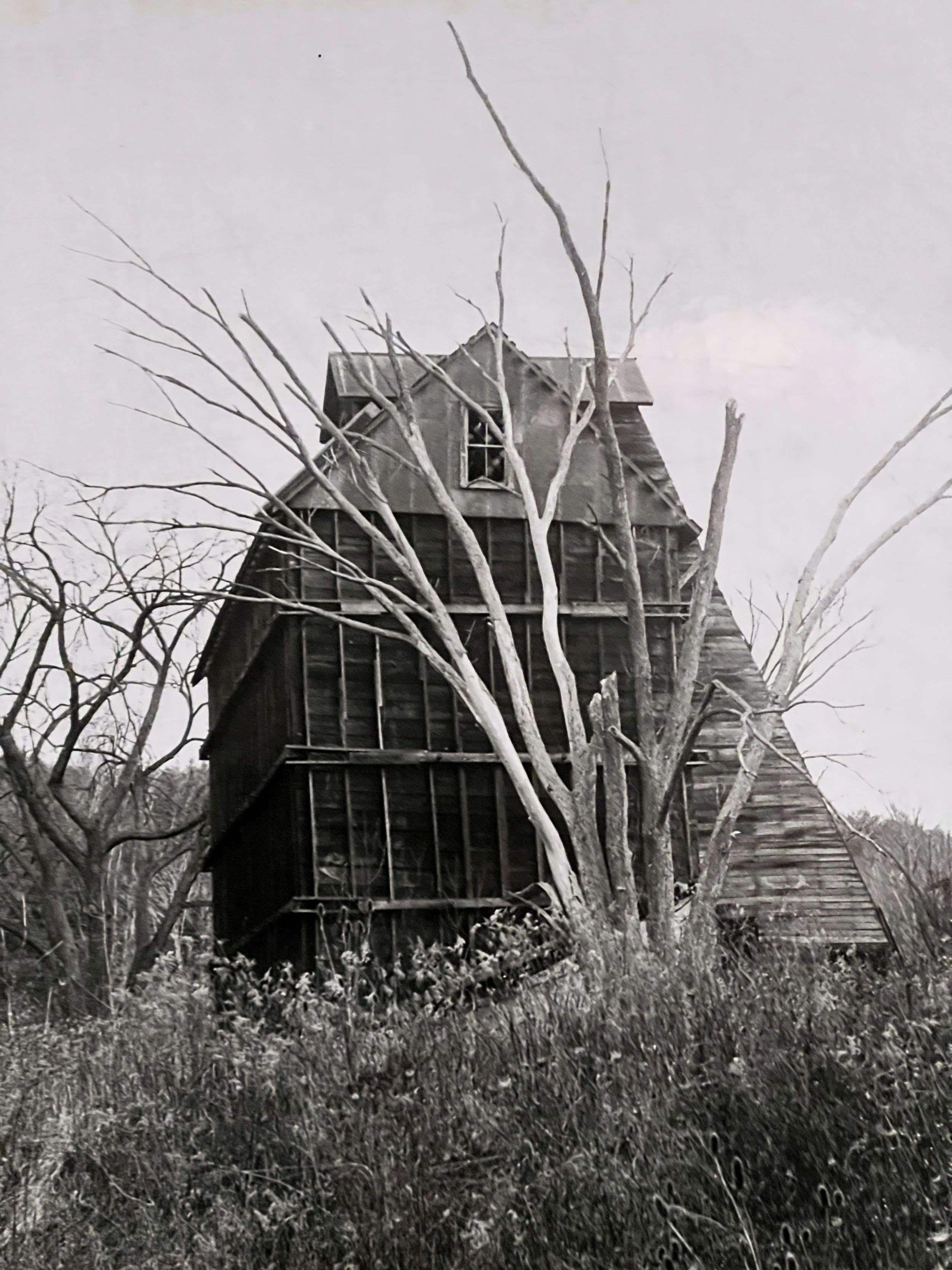 This Coal Shed was part of the mill operation owned by Wallace Bradt of Cato. It was located at the south end of South Street on the west side of Rt. 370 next to the golf course on a spur of the Lehigh Valley Railroad. Railroad coal cars were unloaded into a pit on the right side of the building where an endless conveyor belt of buckets carried the coal to the top of the coal shed. Here the coal was distributed into one of several bins, probably sorted by the type of coal and/or size. The covered conveyor belt is shown on the right side of the building. Chutes at the bottom of the coal shed could be opened, loading coal into trucks for local distribution. This photograph was taken in about 1970 by William Havens.